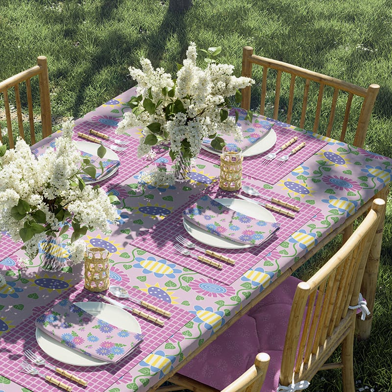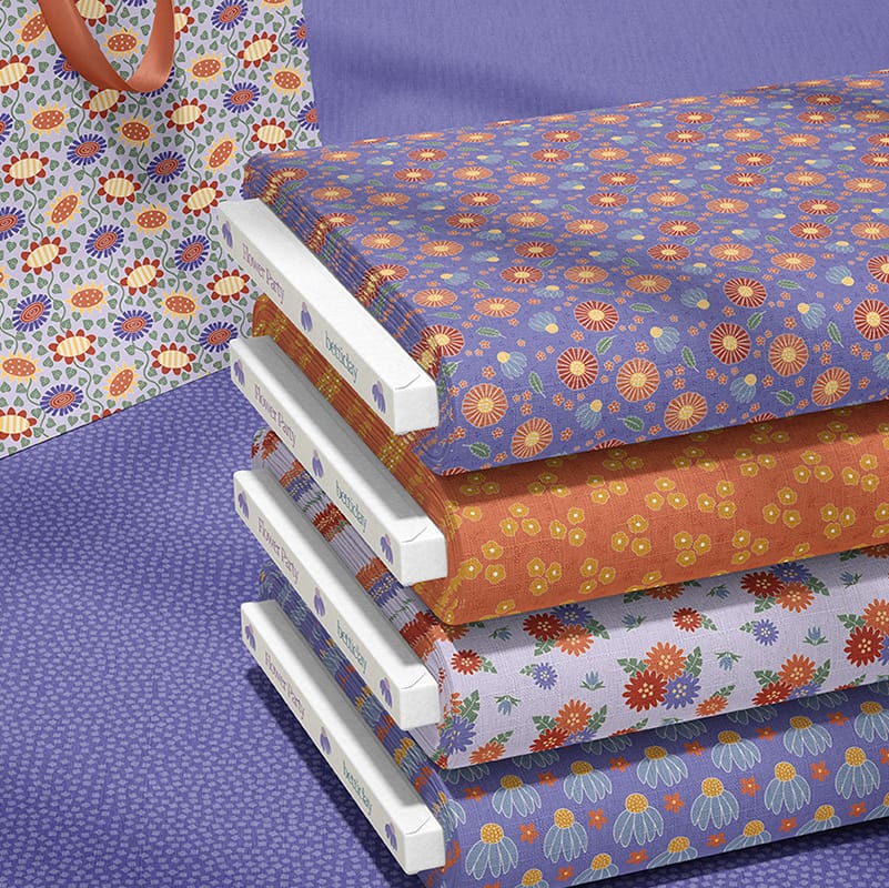 The Flower Party collection is available in three colorways: A Patch of Pink, A Patch of Blue, and Summer’s Finale.